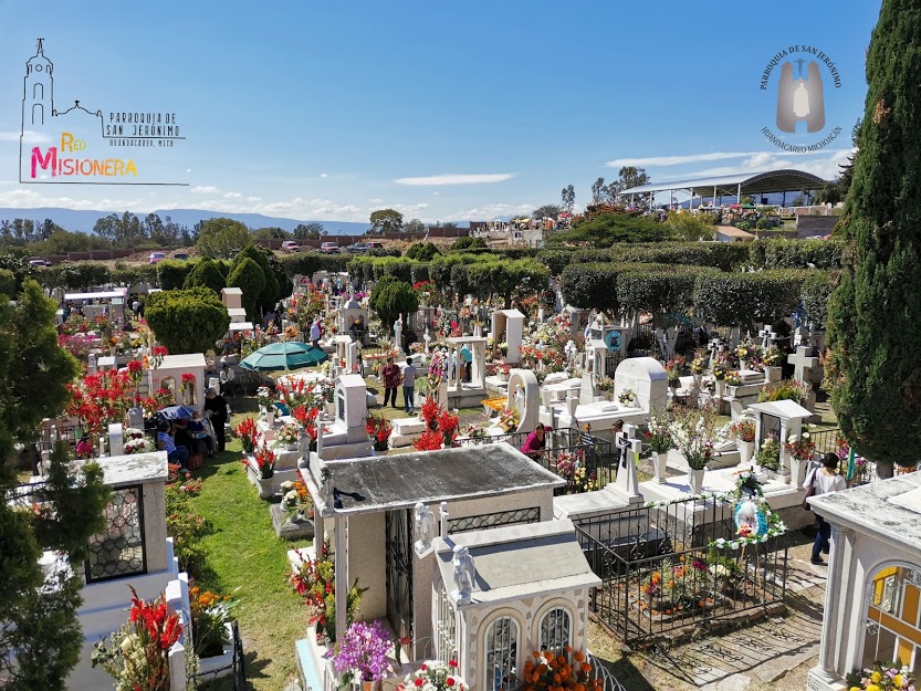 Cada año el 2 de noviembre, Día de Muertos en México y de los Fieles Difuntos según lo marca la Iglesia Católica, muchas personas van al panteón a visitar a sus familiares y ancestros que ya nos han precedido, muchos de ellos por el signo de la Cruz, por ellos y las almas olvidadas se realiza la misa de 12:00 del medio día donde todos, vivos y difuntos presencian la eucaristía. Cada tumba se ve adornada por flores de diferentes colores, adornos y lagrimas de aquellas personas que recuerdan a sus difuntos; la homilía de este año, proclamada por el Pbro. Rubén Hernández Colín, nos invita a imitar a las flores y ser adornos vivos de la memoria de nuestros difuntos, ser flores fragantes para Cristo Jesús.